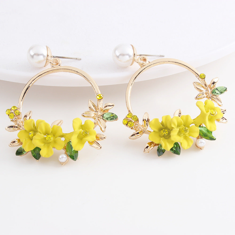 Stunning Flower Jewelry in Hoop drop design. These earrings showcase the bold floral design with a touch of pearl, these are the best statement earrings for everyday use.